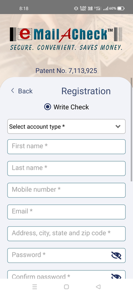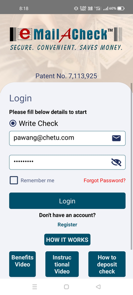 eMailACheck are checks for the 21st century. Our patented technology is a new and improved secure eco-friendly way to send, receive and deposit checks instantly. You can write, send, receive, and deposit a check without ever leaving your chair. Don't worry about your checks getting lost or delayed in the mail. Save postage and time and get paid instantly.